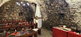 Vydejte se s námi do 14. století! Devět metrů pod zemí, v hlubokém sklepení, najdete naši nejstarší místnost pro degustace, oslavy a večírky. Zažijte jedinečnou atmosféru, kterou vytváří původní kamenná klenba. V zimních měsících vás zahřeje teplo z krbu. Jen pozor – schody jsou příkré!