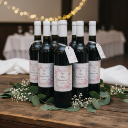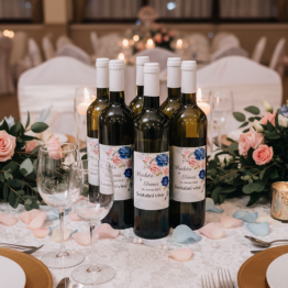 Na etiketu můžete sami vložit Váš text, obrázek nebo fotografii přímo v našem online editoru. Víno může sloužit k svatebnímu pohoštění nebo jako originální pozornost pro svatební hosty. Vybírejte z velkého množství hotových návrhů, které si můžete libovolně upravit, nebo nám zašlete svůj vlastní. Etikety jsou tištěny na samolepicí voděodolný papír.